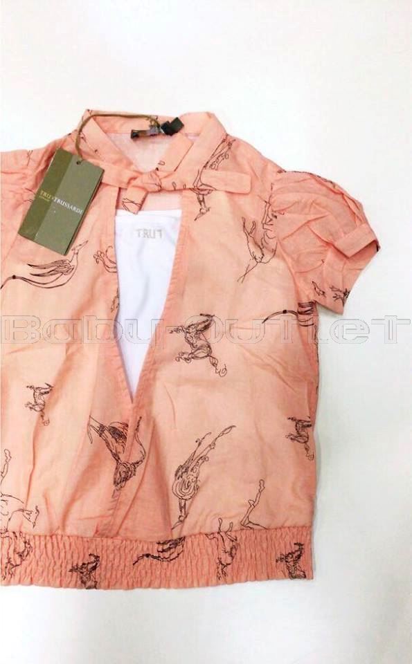 TRUSSARDIย T-SHIRT RAGAZZA TRUSSARDIย T-SHIRT RAGAZZA manica cortaย e girocollo con laccio, elastico sul fondo. sotto-maglia con logo. interamente logata colore:ย arancione taglia:ย 9 anni composizione: 100%ย cotone