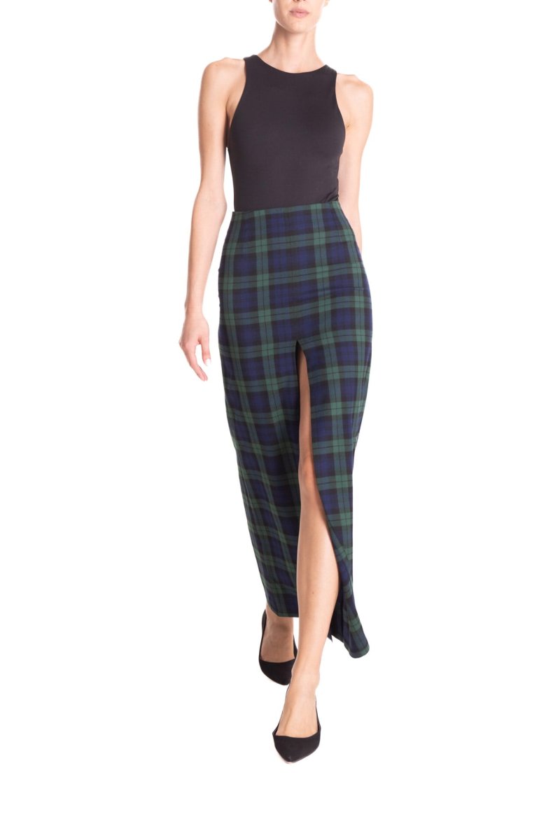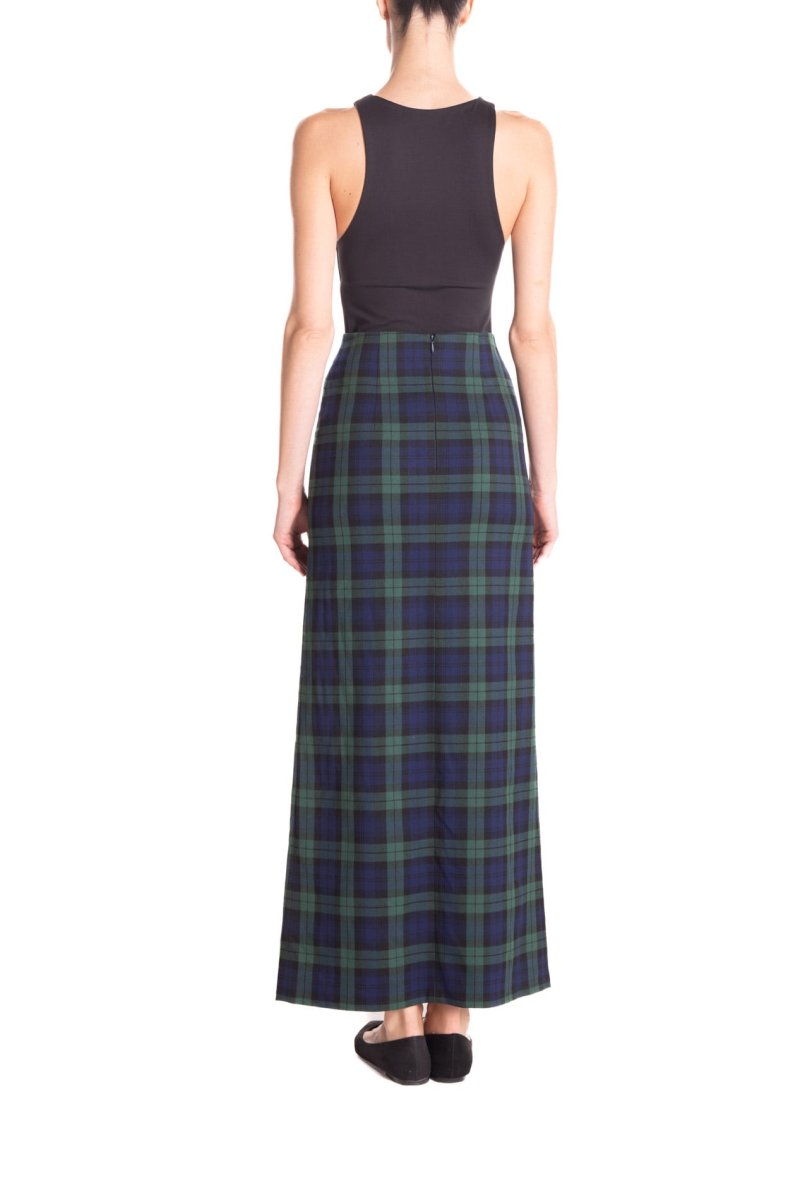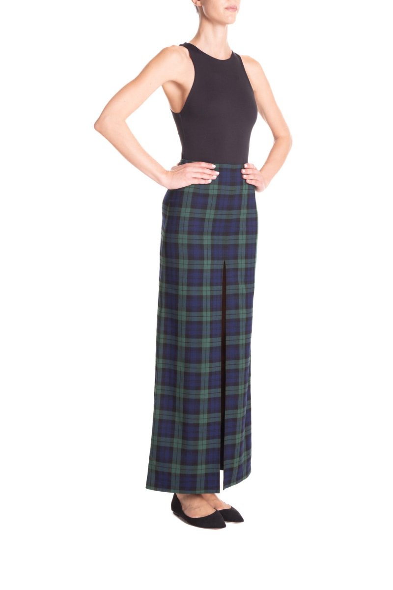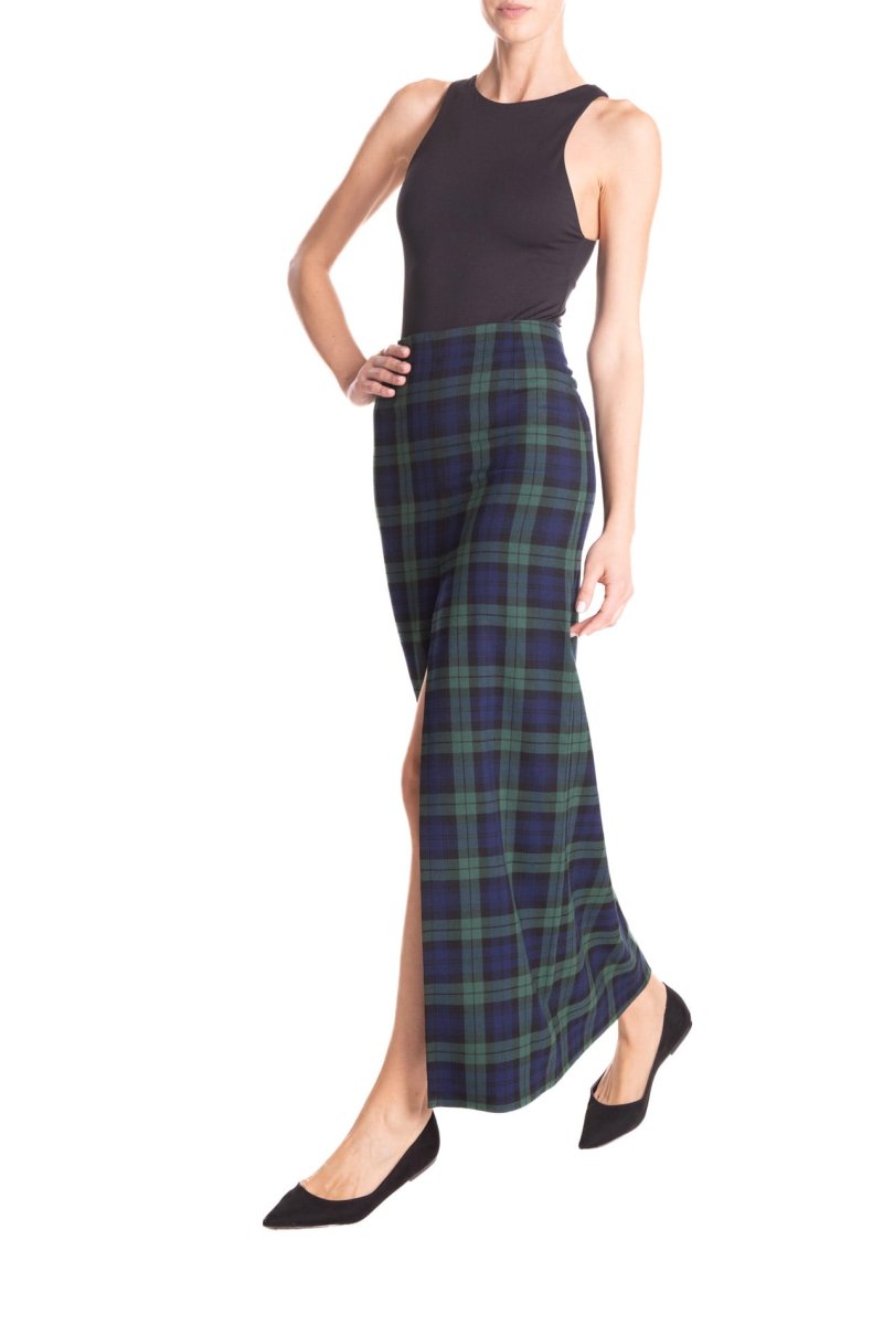 Gonna lunga con spacco centrale, in tessuto scozzese a vita alta. โจCon un tacco o con una scarpa bassa, con una camicia o con un maglione, sarete sempre stiloseย ed uniche.