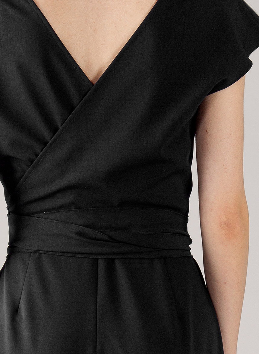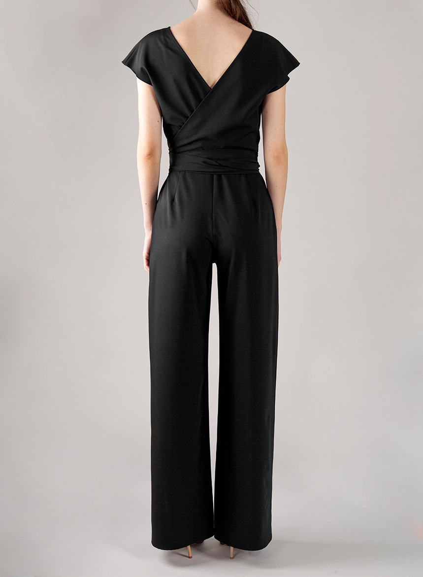 Tuta fluida in Tessuto Fluido Tecnico easy care & iron, gamba con linea a palazzo. Scollo a V incrociato sul retro con cintura e chiusura con zip invisibile. La modella รจ alta 175 cm e indossa una taglia S. Ogni stagione proponiamo tessuti Easy Care & Iron, ideali per chi vive la moda con praticitร e stile. Scegliendo le nostre linee in tessuto tecnico, potrai lavare e stirare i tuoi capi con serenitร in lavatrice, a un massimo di 30ยฐ con ciclo delicato (esclusi i capispalla sartoriali, che richiedono maggiore attenzione a causa della loro struttura e delle spalline).