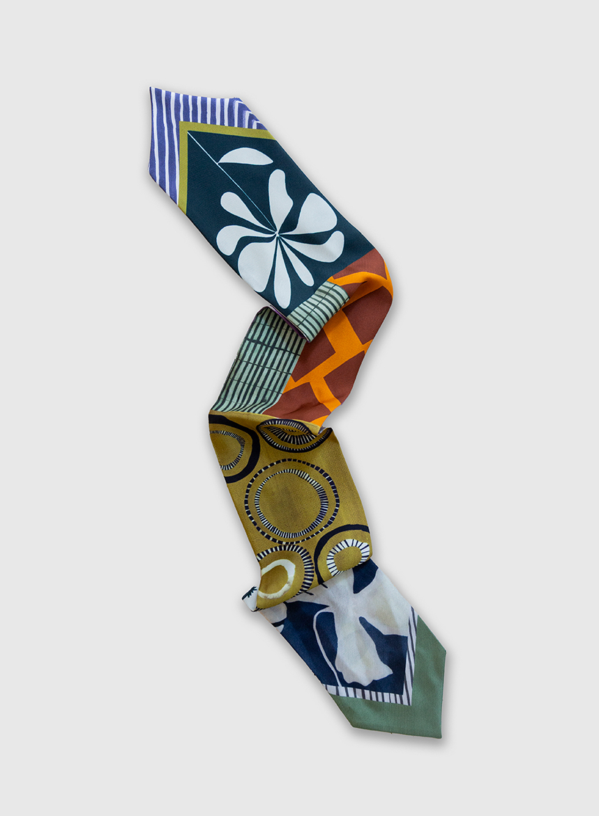 Twilly in seta stampata double face 11×85 cm, utilizzabile al collo oppure come fusciacca per pantaloni e gonne.