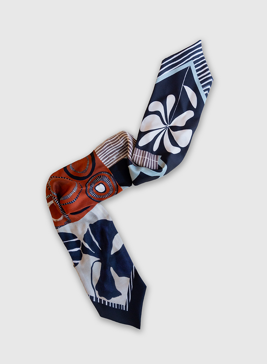 Twilly in seta stampata double face 11×85 cm, utilizzabile al collo oppure come fusciacca per pantaloni e gonne.