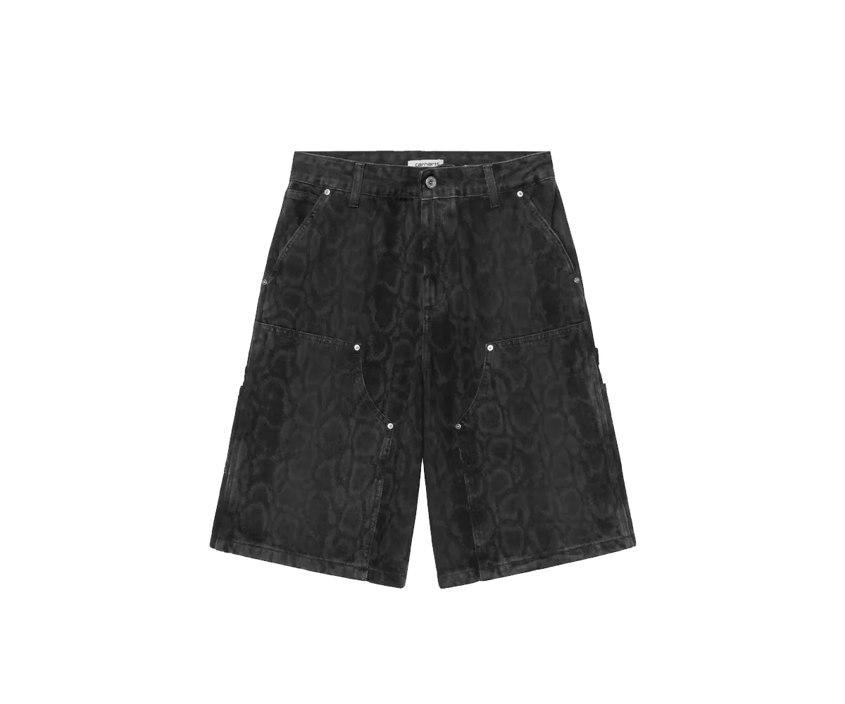 Codice prodotto: I036866_3R2_60 Descrizione: I Womenโs Snake Nixon Double Knee Short sono realizzati in pesante denim di cotone e caratterizzati da vestibilitร ampia con stampa mimetica allover โpelle di serpenteโ. Ispirati ai classici pantaloni da lavoro, i pantaloncini presentano ginocchia rinforzate, tasche porta-attrezzi e passante portamartello. Il design รจ rifinito da unโetichetta quadrata in tessuto.